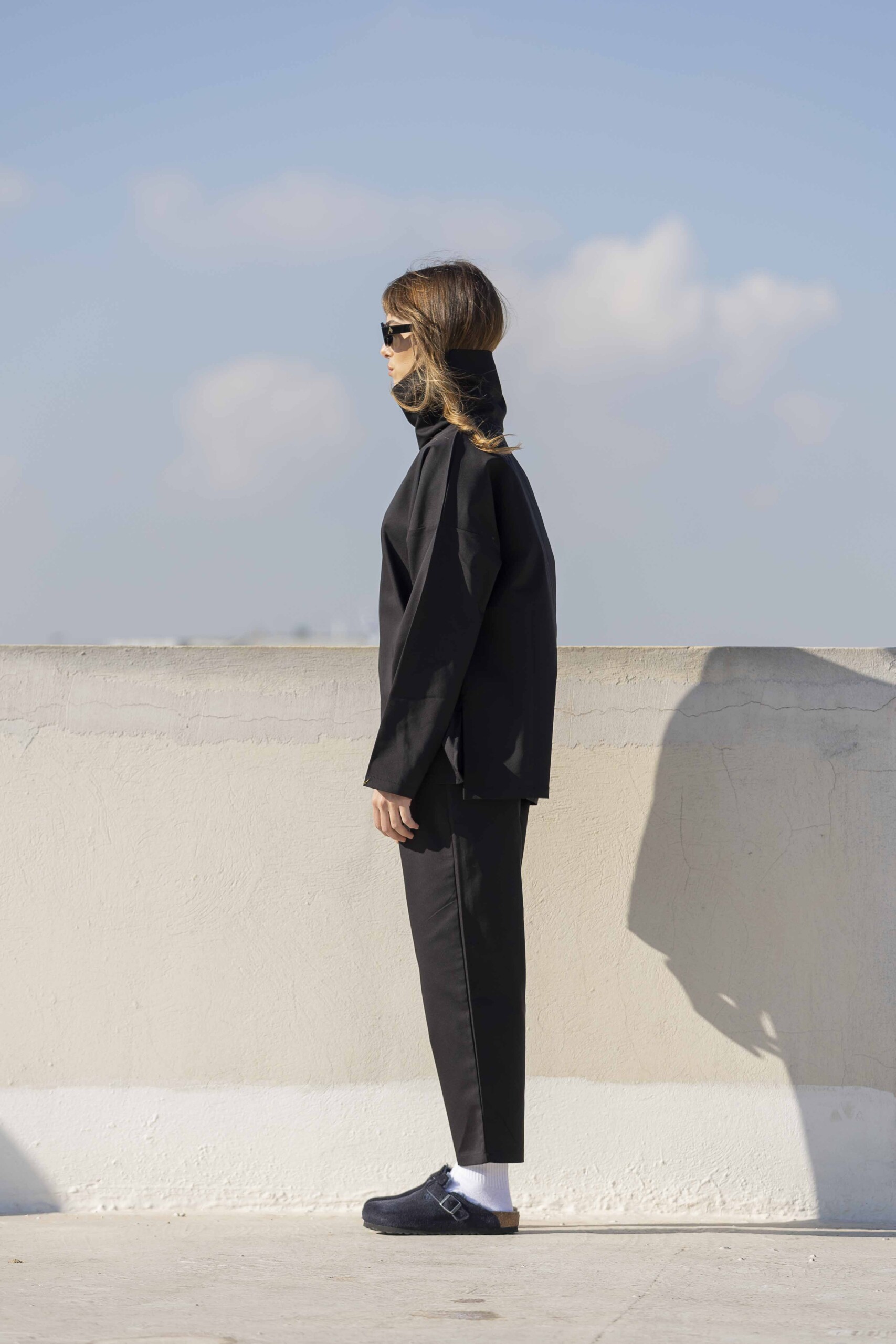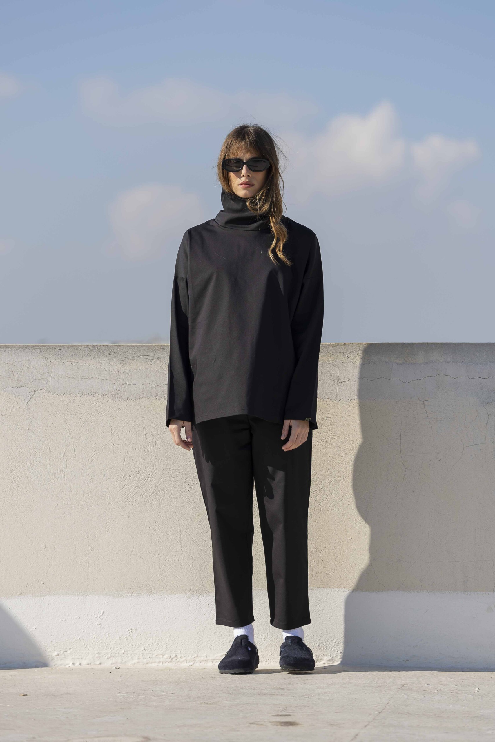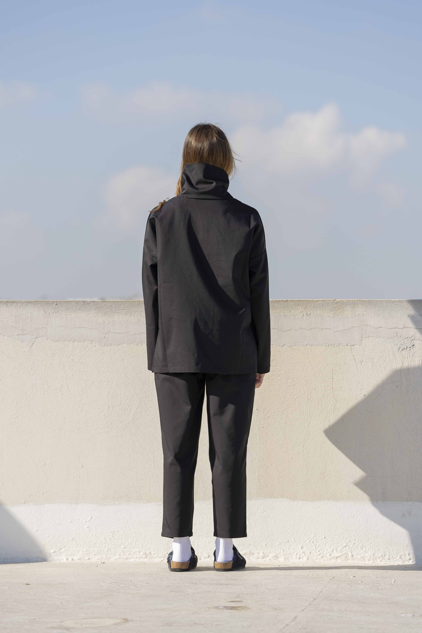 High Collar Blouse-Black