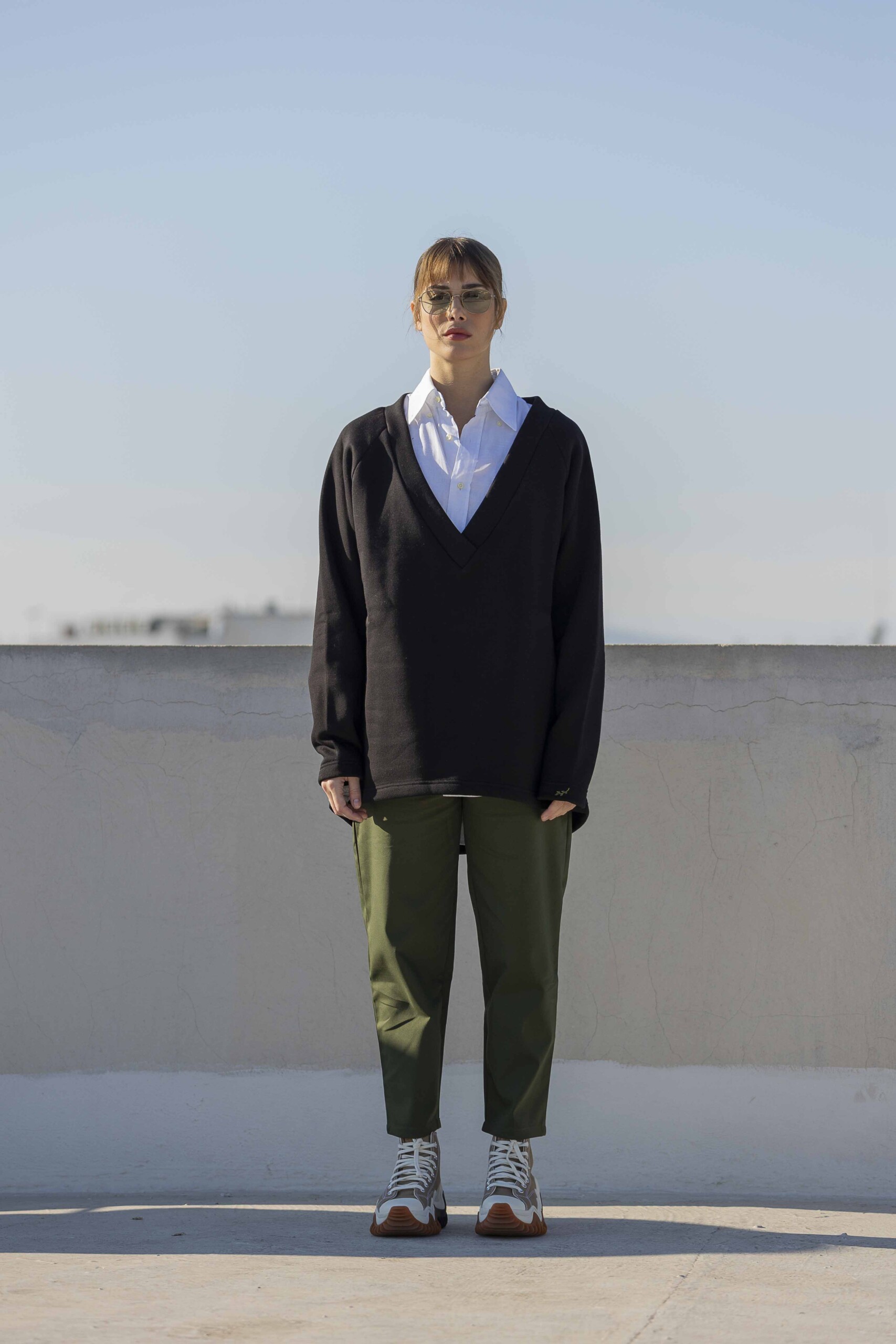 V-Neck Blouse-Black