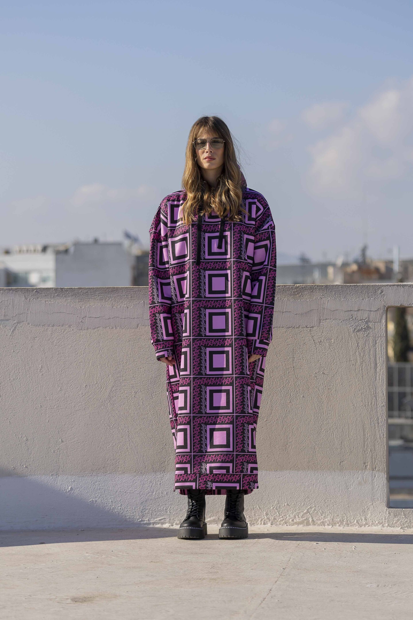 Long Hoodie Dress-Pink Panther